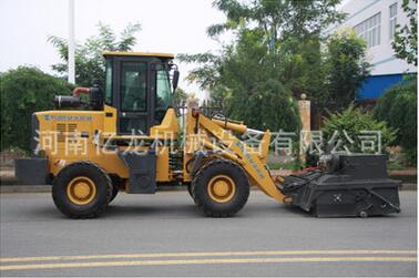 我公司生產(chǎn)的路面環(huán)保無(wú)塵清掃機(jī)是結(jié)合國(guó)內(nèi)外同類設(shè)備特點(diǎn)開發(fā)的新一代路面環(huán)保無(wú)塵清掃機(jī)。在工作過程中沒有灰塵,解決了道路施工中灰塵大,影響交通、環(huán)境污染的問題,響應(yīng)了國(guó)家提倡環(huán)保節(jié)能的政策。該設(shè)備在小型裝載機(jī)、滑移裝載機(jī)、叉車等基礎(chǔ)上進(jìn)行改裝,經(jīng)濟(jì)實(shí)用。采用專業(yè)、高功效的環(huán)保無(wú)塵清掃設(shè)備,替代傳統(tǒng)大量人力低效、不安全、灰塵大的清掃方法,節(jié)省人力成本,具有效率高、效果好、速度快、油耗低等特點(diǎn)。該機(jī)采用封閉灰斗箱,大顆粒通過刷子直接掃入灰斗箱中,配置高效吸塵器,通過風(fēng)機(jī)吸力將微灰塵吸到濾箱體內(nèi),通過濾箱體內(nèi)濾芯的過濾和反吹部件的反吹最后落入灰斗箱中,灰斗箱滿后,可以傾倒至垃圾處理點(diǎn)或直接裝車,清潔而環(huán)保。清掃器與原機(jī)鏟斗可快速更換,還可選配多種機(jī)具,便于實(shí)現(xiàn)一機(jī)多用(裝載、無(wú)塵清掃、除雪、掃雪、拉毛等),實(shí)現(xiàn)多功能。
