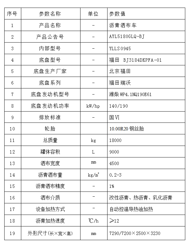 2、YLLS0945(國(guó)Ⅵ 標(biāo)配型)全自動(dòng)瀝青灑布車技術(shù)參數(shù)