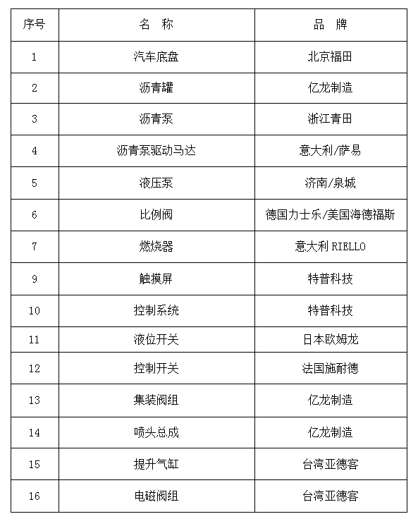 3、YLLS0945(國(guó)Ⅵ 標(biāo)配型)全自動(dòng)瀝青灑布車主要元器件配置