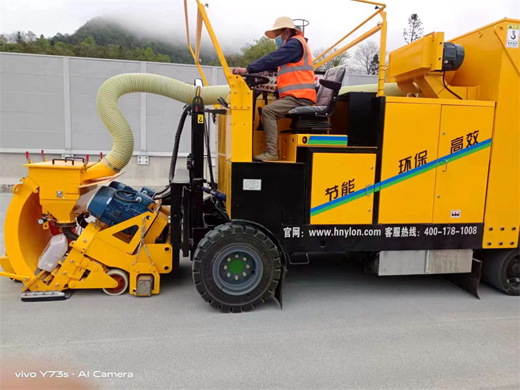 駕駛式路面拋丸機(jī)通過機(jī)械的方法把丸料(鋼丸或砂粒)以很高的速度和一定的角度拋射到工作表面上,讓丸料沖擊工作表面,以達(dá)到被拋射的表面粗化并去除殘留物的效果,與此同時(shí)除塵器產(chǎn)生的負(fù)壓會(huì)將丸料和清理下來的雜質(zhì)粉塵等回收經(jīng)過氣流清洗后,完好的丸料會(huì)自動(dòng)循環(huán)使用,而雜質(zhì)和粉塵也會(huì)落入灰斗中